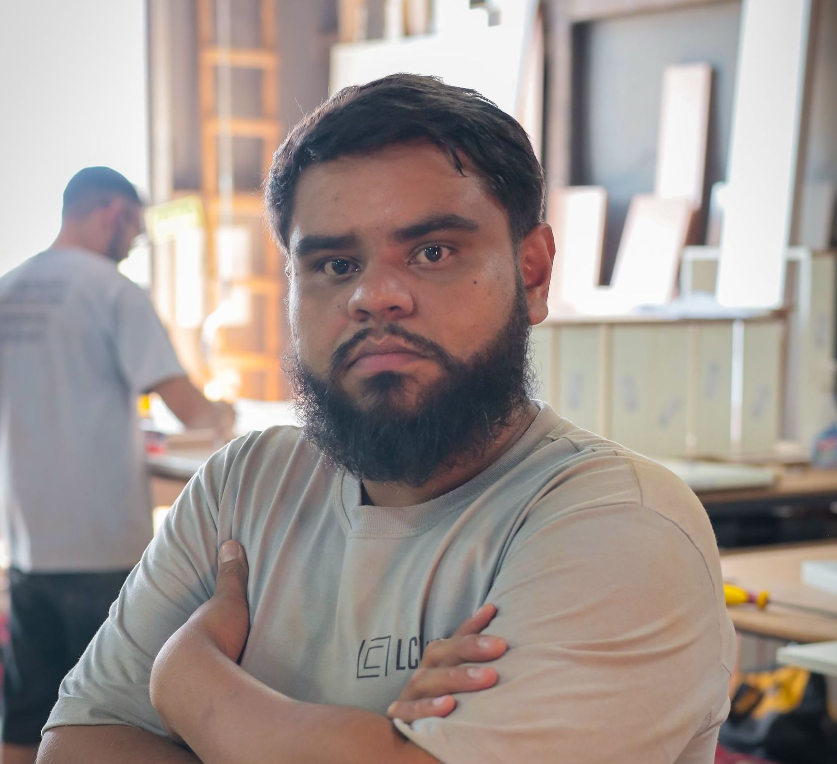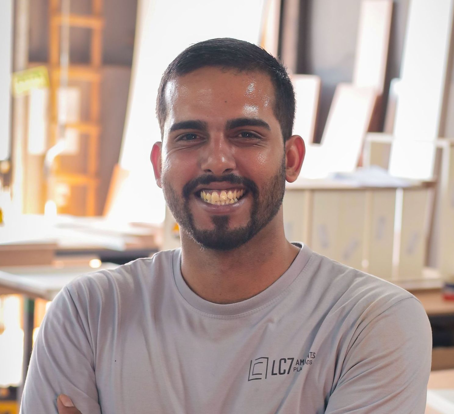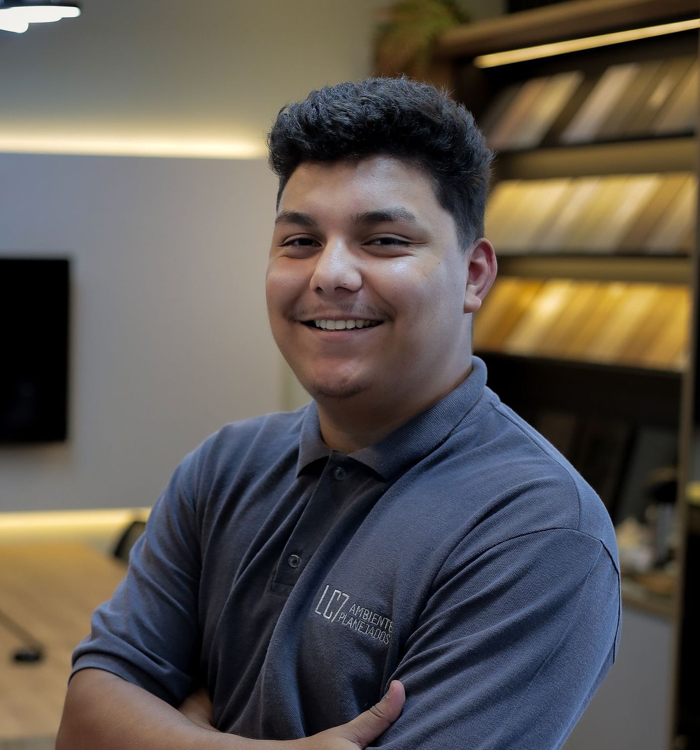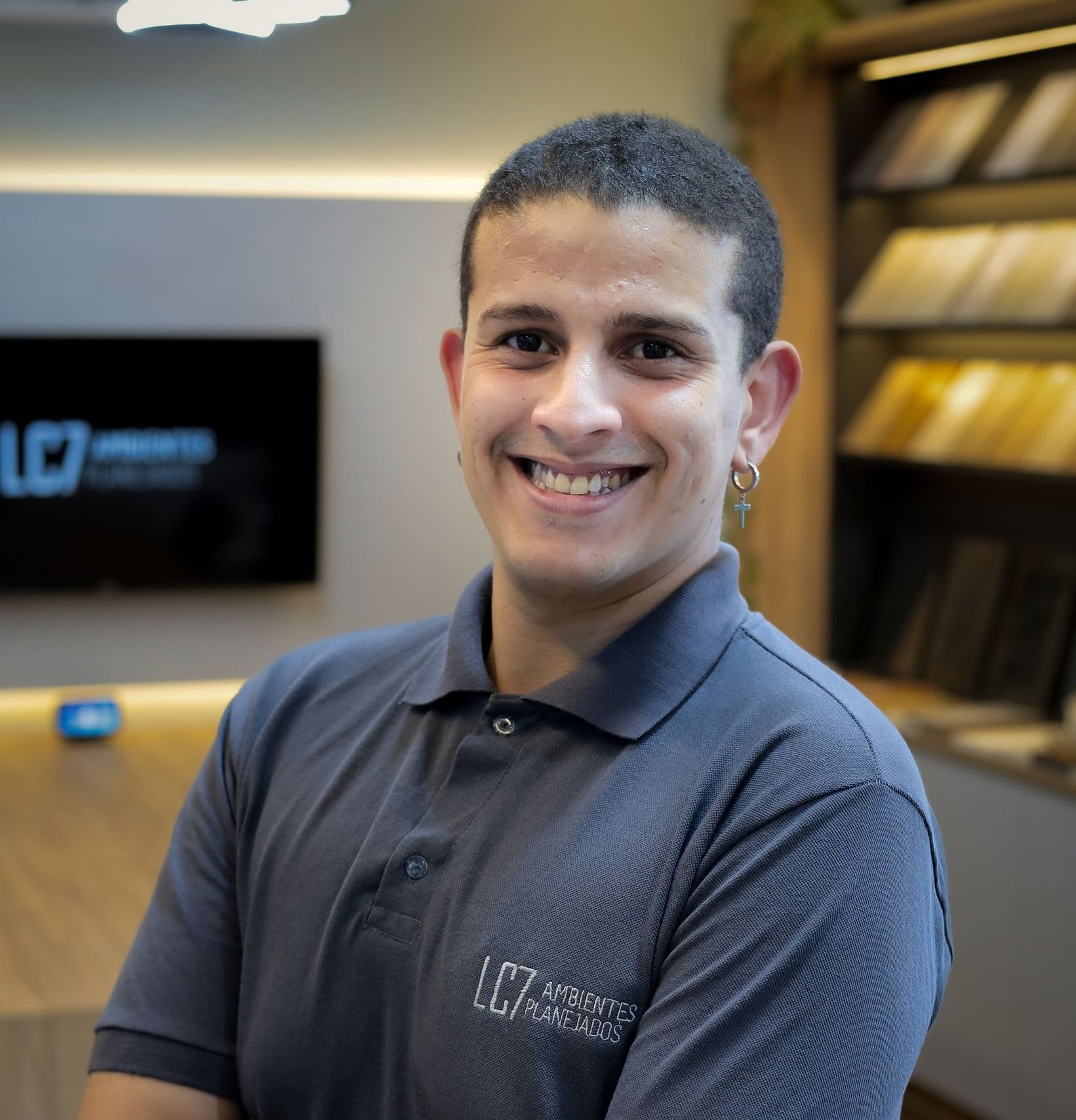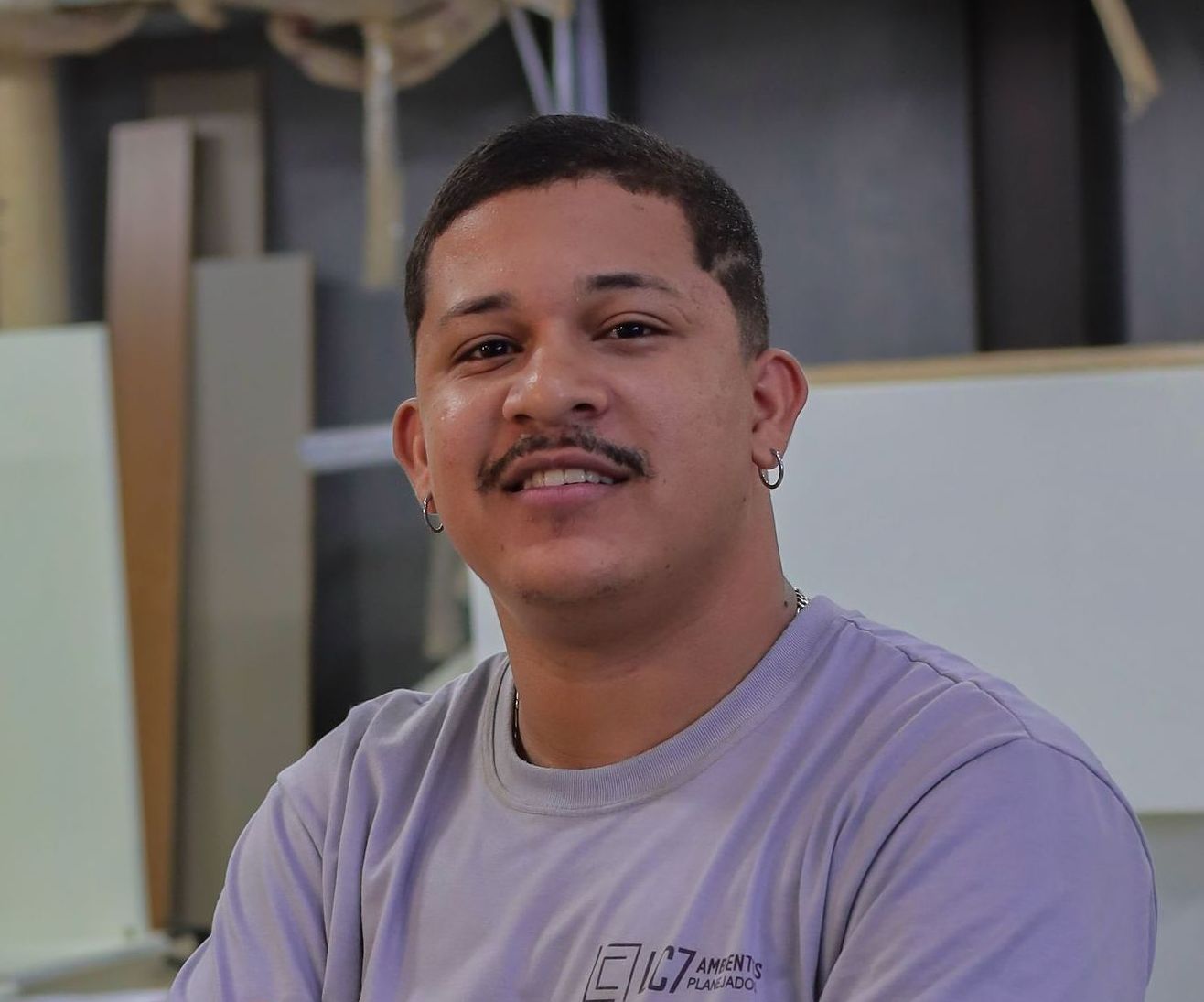 Nosso CEO, um engenheiro civil com formação em marcenaria e atualmente estudante de arquitetura e urbanismo, possui uma vasta experiência em projetos de ambientes planejados.